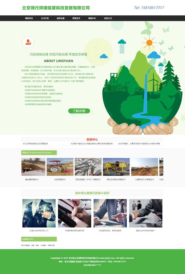 北京領元環境修復科技發展有限公司主要從事土壤治理及修復、水土保持方案、污染場地治理、農田污染治理、環境生態修復等業務工作。網址 www.lyhjxf.com